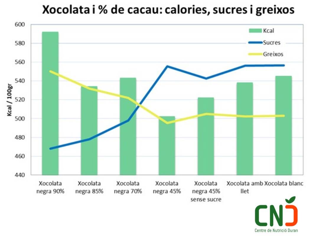 El chocolate negro y el blanco o con leche tienen kcal muy parecidos.